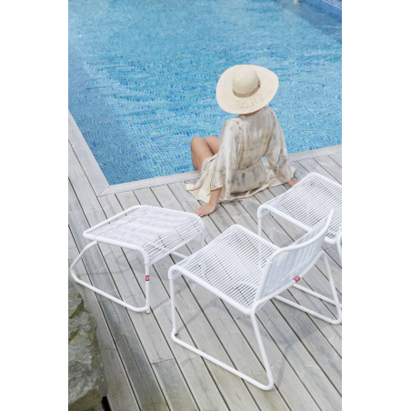 Le cordage en PVC, entièrement tissé à la main, apporte souplesse, résistance et une signature esthétique forte, fidèle à l’esprit SPAGHETTI. Pour une expérience de détente encore plus complète, associez-le au repose-pieds LIDO.