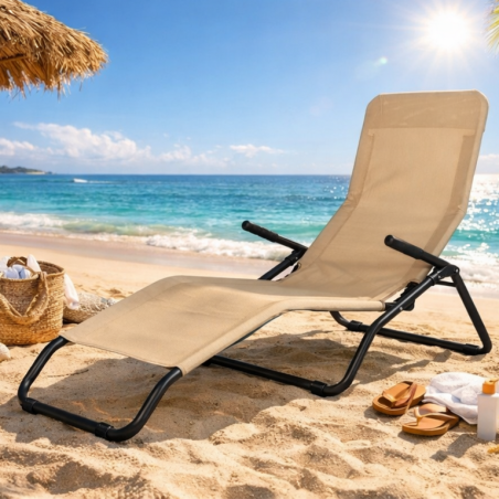 Son armature en acier peint assure une excellente stabilité et une grande résistance aux usages extérieurs. Les accoudoirs ergonomiques avec revêtement caoutchouc offrent un confort supplémentaire et restent agréables au toucher même en plein soleil. Son tissu résistant, respirant et facile d’entretien (70% PVC / 30% Polyester) garantit confort, durabilité et hygiène au quotidien.